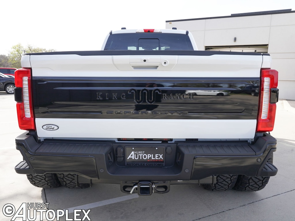 4WD, 360-Degree Camera, AM/FM radio: SiriusXM with 360L, Auto High-beam Headlights, Chrome Door Handles, Chrome Exhaust Tip, Chrome Package, Dual rear wheels, Exterior Parking Camera Rear, Flow-Through Console, FX4 Off-Road Package, Heads-Up Display, Heated front seats, Heated rear seats, Heated steering wheel, Hill Descent Control, Navigation system: Connected Navigation, Off-Road Specifically Tuned Shock Absorbers, Power passenger seat, Radio: B&O Unleashed Sound System by Bang & Olufsen, Rain sensing wipers, SiriusXM with 360L, Split folding rear seat, SYNC 4 with Enhanced Voice Recognition, Unique Chrome Mirror Caps, Unique FX4 Off-Road Box Decal, Unique King Ranch Leather 40/Console/40 Seats, Upfitter Switches (6), Vehicle Safe by Console Vault, Ventilated front seats. DRW