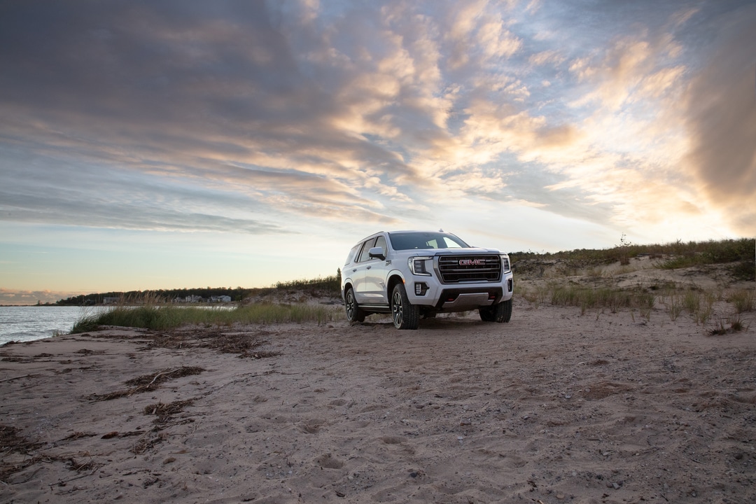 The 2025 GMC Yukon Elevation trim sets the stage with premium features like a Bose® ten-speaker surround sound system, power liftgate, and 20-inch machined and painted Satin Graphite wheels. Step up to the AT4 trim for a more rugged, off-road-focused experience, complete with distinctive black accents, a front skid plate, and standard four-wheel drive.